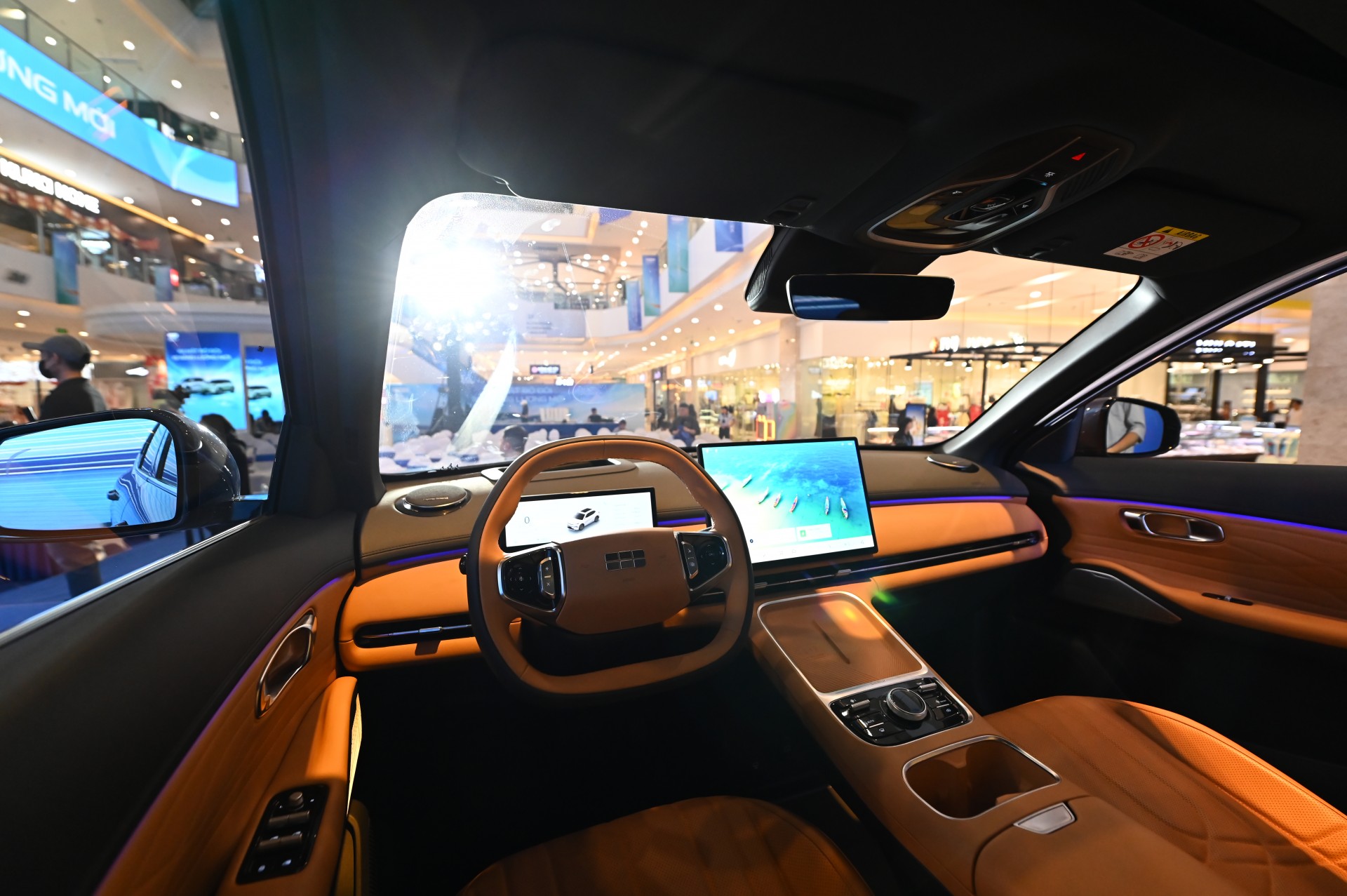 Bên trong, ghế lái chỉnh điện, chất liệu da ở cả 3 phiên bản. Tuy nhiên chỉ có hai bản Max và Ultra có tính năng nhớ ghế lái. Vô-lăng bọc da, tích hợp phím chức năng.