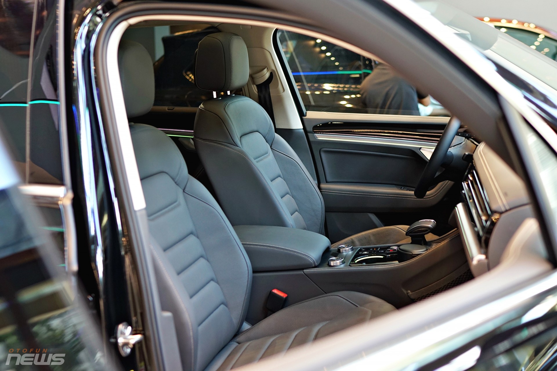 Touareg Highline được trang bị khoang cabin hướng tới sự thoải mái. Ghế ngồi bọc da Vienna cao cấp, chỉnh điện đa hướng kèm nhớ vị trí. Tông màu nội thất sáng, ít đường chỉ may tương phản, khác biệt so với bản R-Line vốn có ghế da cao cấp với thiết kế ôm sát, cùng logo R-Line thêu nổi bật.