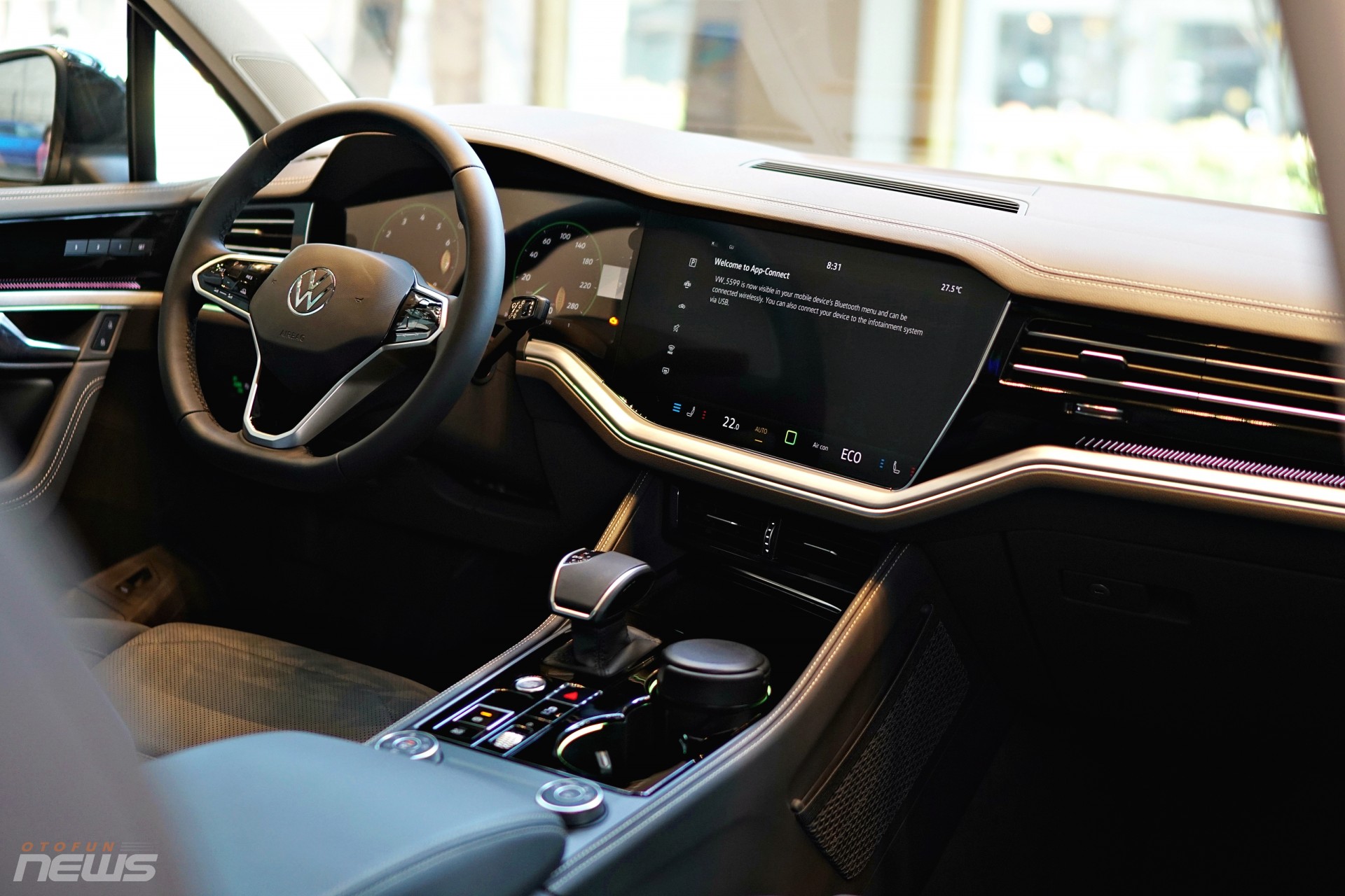 Điểm nhấn của Touareg Highline vẫn nằm ở hệ thống giải trí Innovision Cockpit với màn hình trung tâm 15 inch kết hợp bảng đồng hồ kỹ thuật số 12 inch, tương tự bản R-Line. Tuy nhiên, khác biệt đáng chú ý là hệ thống âm thanh: bản Highline chỉ được trang bị 8 loa tiêu chuẩn, trong khi R-Line sở hữu dàn âm thanh cao cấp 13 loa Dynaudio mang lại trải nghiệm sống động hơn.