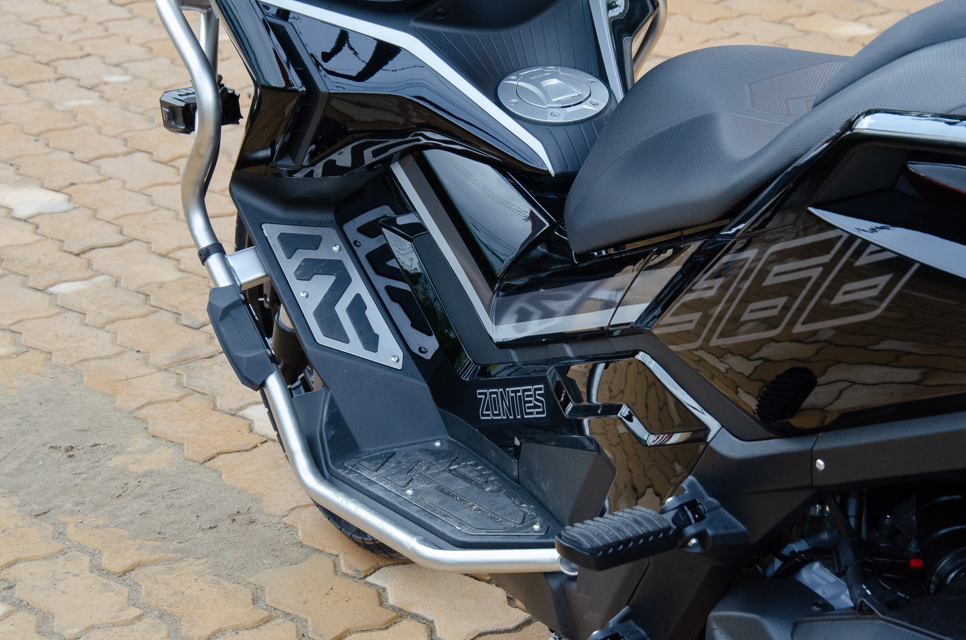 Zontes 368G gây ấn tượng với màn hình TFT 8 inch hiển thị sắc nét dưới trời nắng, tích hợp giao diện trực quan. Người lái được hỗ trợ tính năng kiểm soát lực kéo (TCS), sưởi tay lái, trong khi cụm công tắc thiết kế khoa học dễ thao tác.