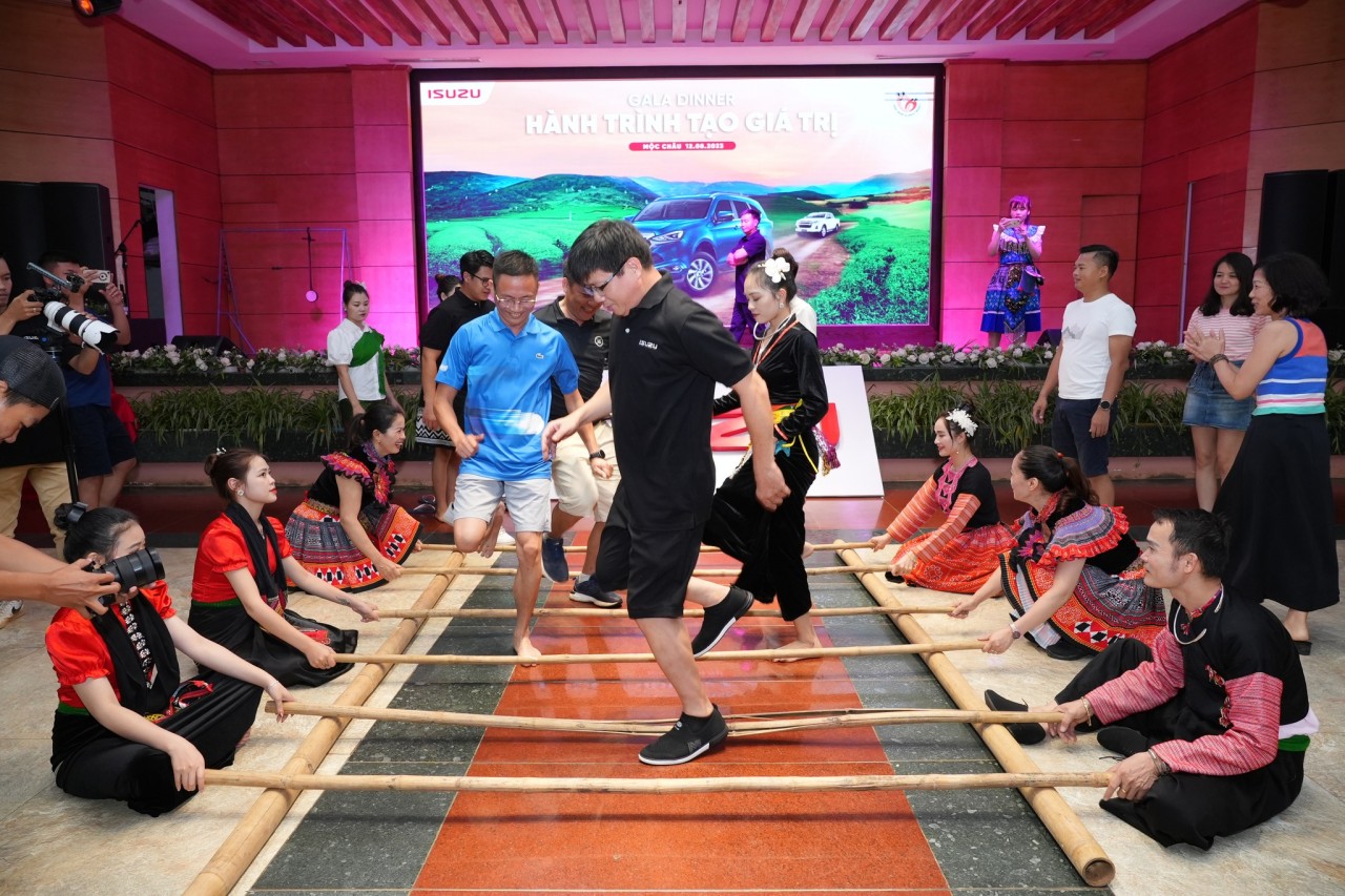 Hai phần ba hành trình Isuzu Caravan 2023 được gói gọn trong đêm Gala Dinner ấm cúng và nhiều niềm vui. Cả đoàn thành viên cùng chia sẻ trải nghiệm sau hành trình hai ngày 11-12/8, thưởng thức ẩm thực và các phần biểu diễn đặc trưng của văn hóa Tây Bắc.