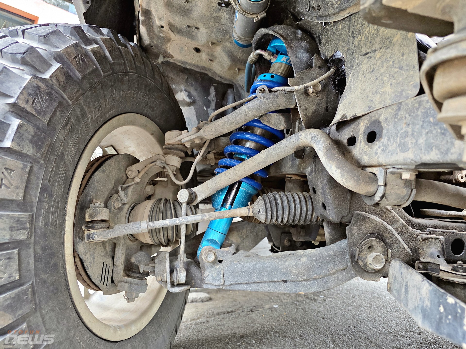 Phần khung gầm được đầu tư đáng kể với bộ giảm xóc King và hệ thống cân bằng ARB, giúp xe giữ thăng bằng tốt khi di chuyển qua bùn lầy hay đá gập ghềnh. Cản và bệ bước ARB tăng khả năng chịu va đập, trong khi khung chống lật đảm bảo an toàn cho đội đua. Bộ mâm vỏ beadlock CNC chuyên dụng cũng được lắp để giúp xe duy trì độ bám khi chạy ở áp suất lốp thấp, yếu tố quan trọng trong các bài thi off-road.