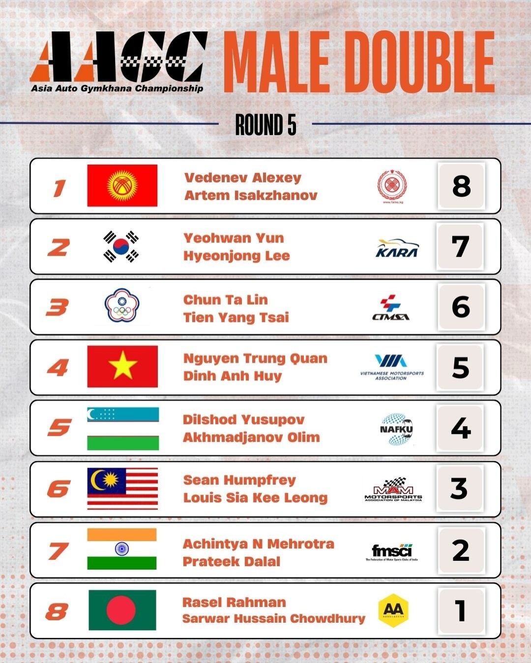 Sau 5 vòng đấu của AAGC 2025, Việt Nam đạt tổng cộng 18 điểm ASN, đứng ngang Thái Lan và Malaysia. Trong bối cảnh chỉ tham dự 2 round và không có tay đua nữ để mở rộng hạng mục ghi điểm, đây được xem là thành tích vượt kỳ vọng. Quan trọng hơn, Việt Nam lần đầu được xướng tên một cách rõ ràng trên bản đồ Gymkhana châu Á, không còn là sự hiện diện mang tính thử nghiệm.