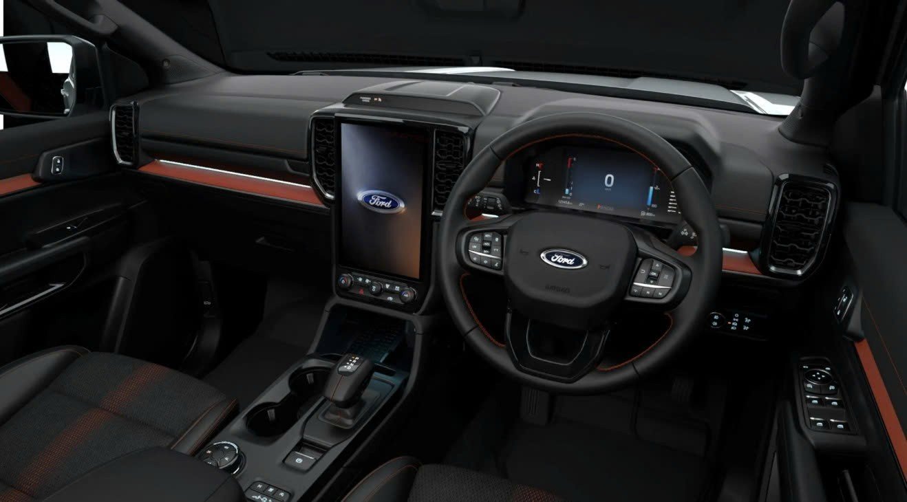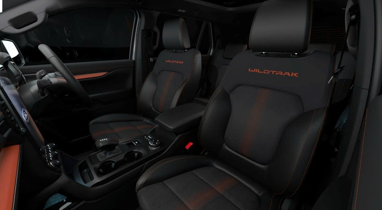 Không gian nội thất được tinh chỉnh với chỉ khâu màu cam và logo Wildtrak trên ghế da. Ngoài ra, xe còn được trang bị nhiều tiện nghi cao cấp vốn chỉ có trên phiên bản Platinum, bao gồm đèn pha Matrix LED, cửa sổ trời toàn cảnh, hệ thống đèn viền nội thất và hàng ghế thứ ba chỉnh điện.