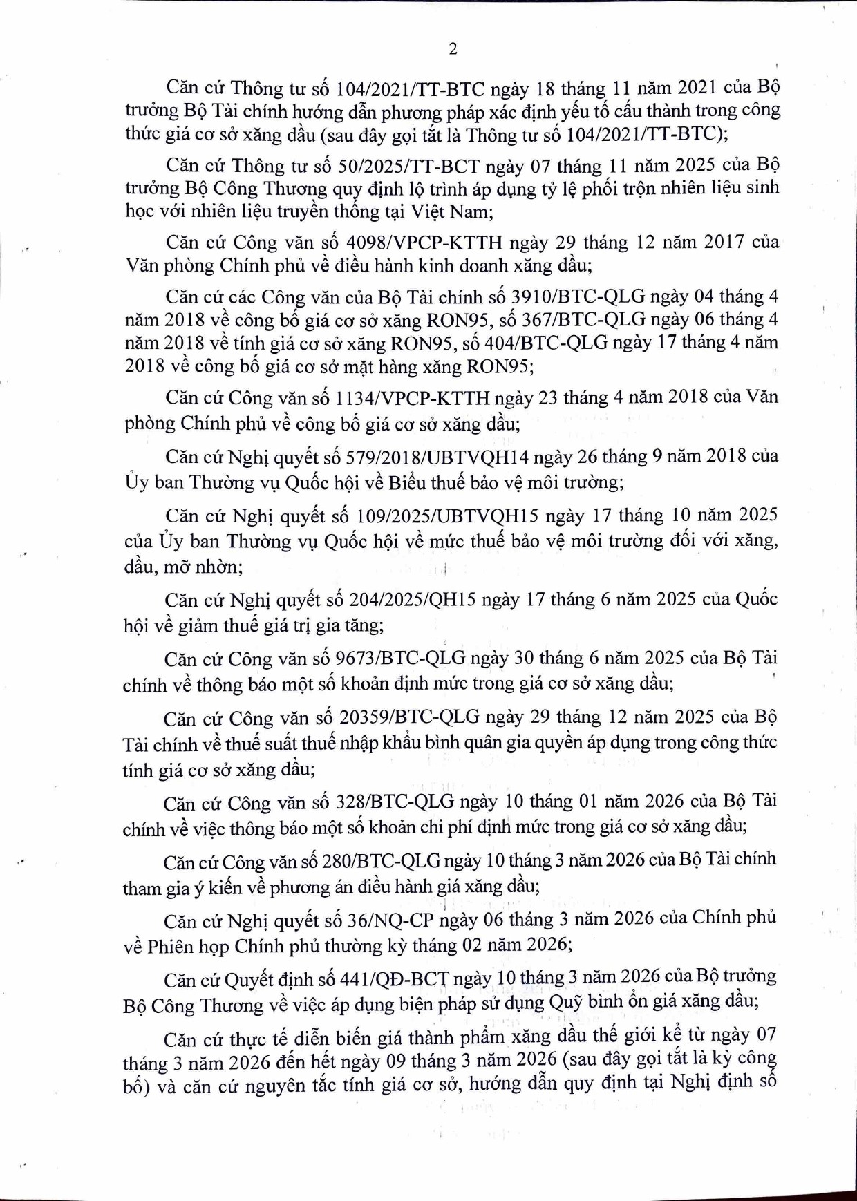 Công văn điều hành xăng dầu của Bộ Công Thương: