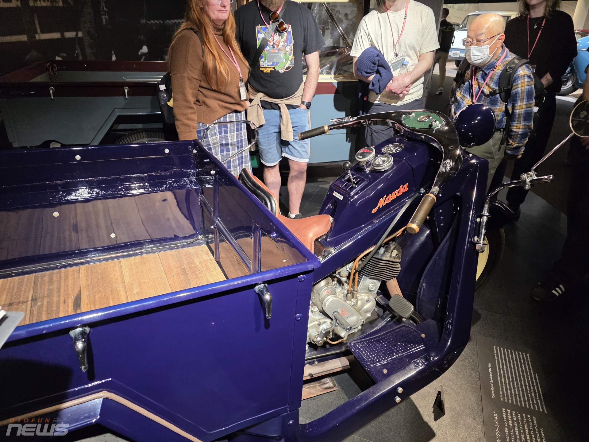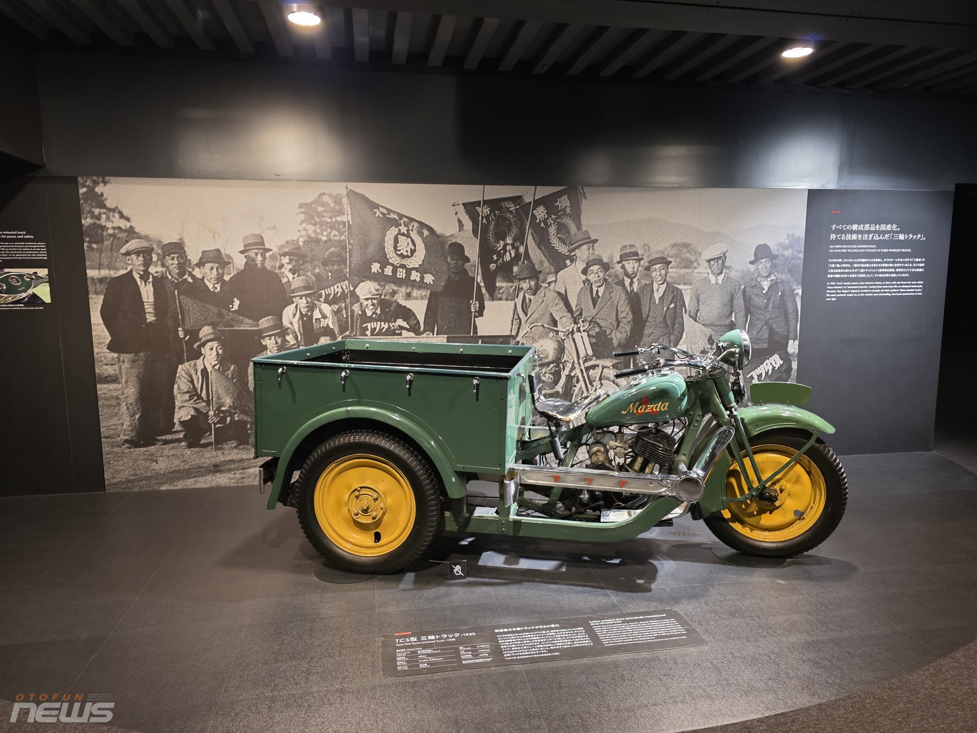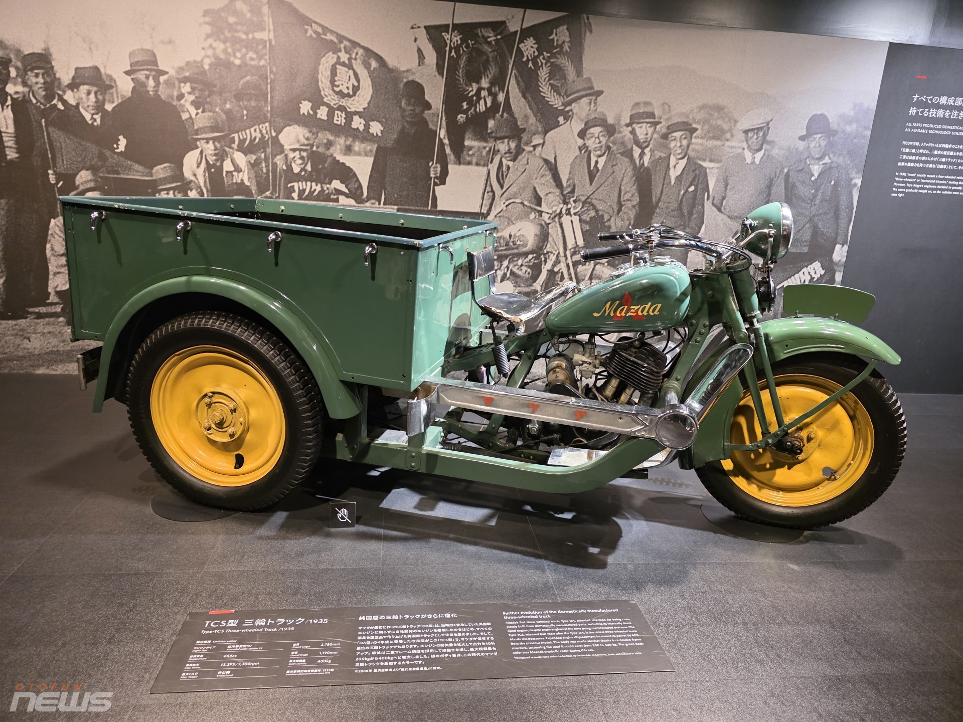 Hiện vật đầu tiên khiến nhiều người dừng lại khá lâu là chiếc xe tải ba bánh Type TCS. Đây là một trong những phương tiện đầu tiên mà Mazda sản xuất từ những năm 1930.