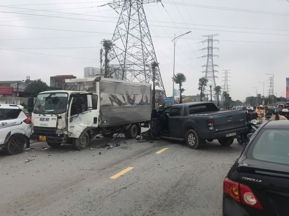 Đến 4h47p cùng ngày, xe tải BKS 29E-330.36, do Đỗ Hoàng Trung (SN 1985) điều khiển tông đuôi xe ô tô khách BKS 50H-302.62, do Phạm Tuấn Đạt (SN 1986) điều khiển, đang lưu thông cùng chiều phía sau 2 xe tai nạn.