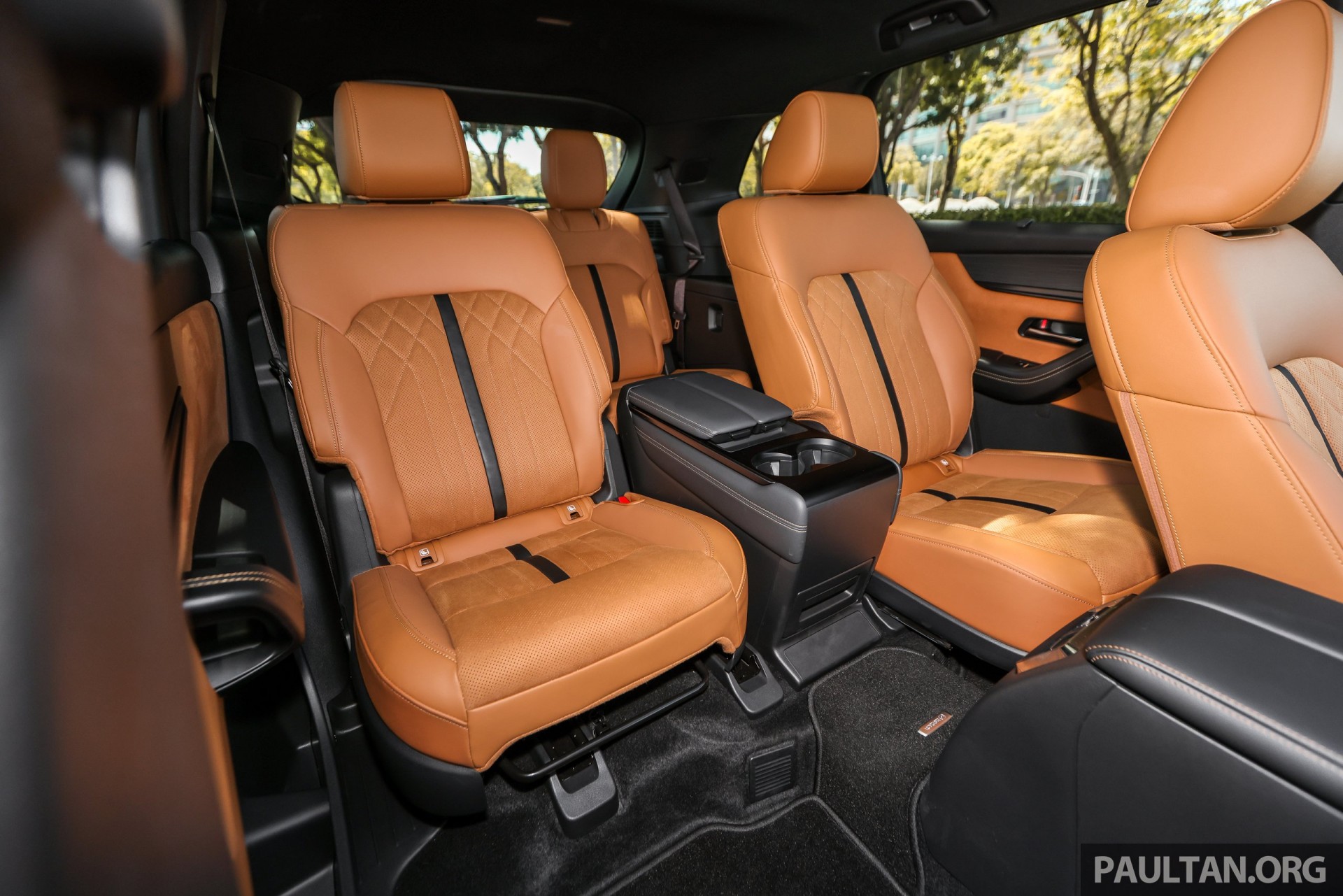 Điểm nhấn nằm ở hàng ghế thứ hai dạng captain seat có sưởi, làm mát, ngả điện và bệ tỳ tay trung tâm. Ghế có thể trượt tới/lui thủ công hoặc gập một chạm để ra vào hàng ghế thứ ba. Hàng ghế cuối phù hợp cho trẻ em hoặc hành khách di chuyển quãng ngắn, có thể gập phẳng để tăng diện tích khoang hành lý.