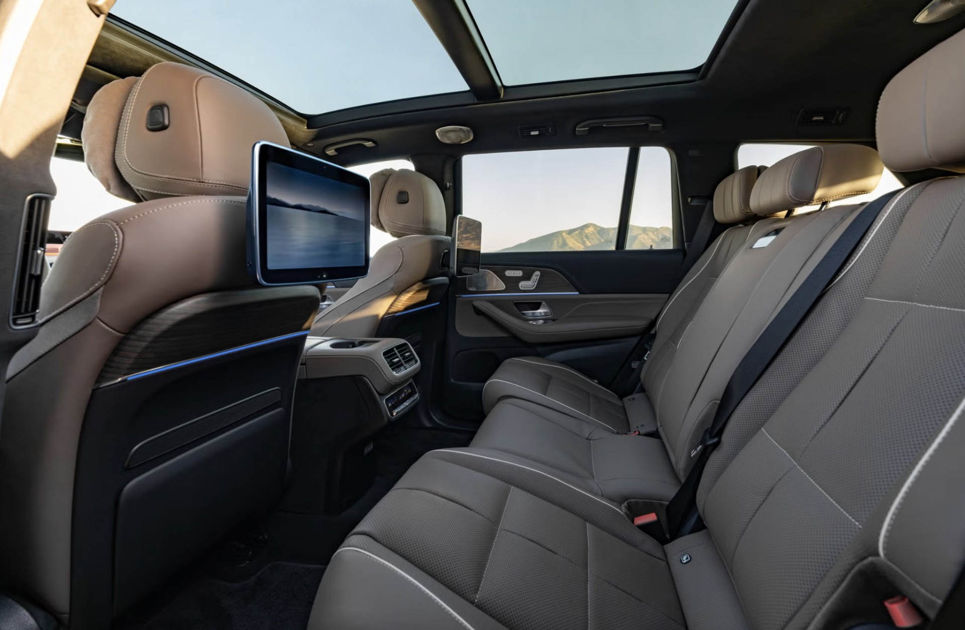 Không gian nội thất cũng là điểm nhấn lớn khi Mercedes-Benz đưa cụm Superscreen vào GLE và GLS. Bố cục này gồm ba màn hình 12,3 inch, kéo theo việc làm mới toàn bộ khu vực táp lô, cửa gió điều hòa và giao diện điều khiển. Vô lăng ba chấu mới tích hợp phím cảm ứng theo phong cách các mẫu sedan đời mới. Hãng cũng mở rộng các tùy chọn vật liệu trang trí và màu sơn để tăng khả năng cá nhân hóa.