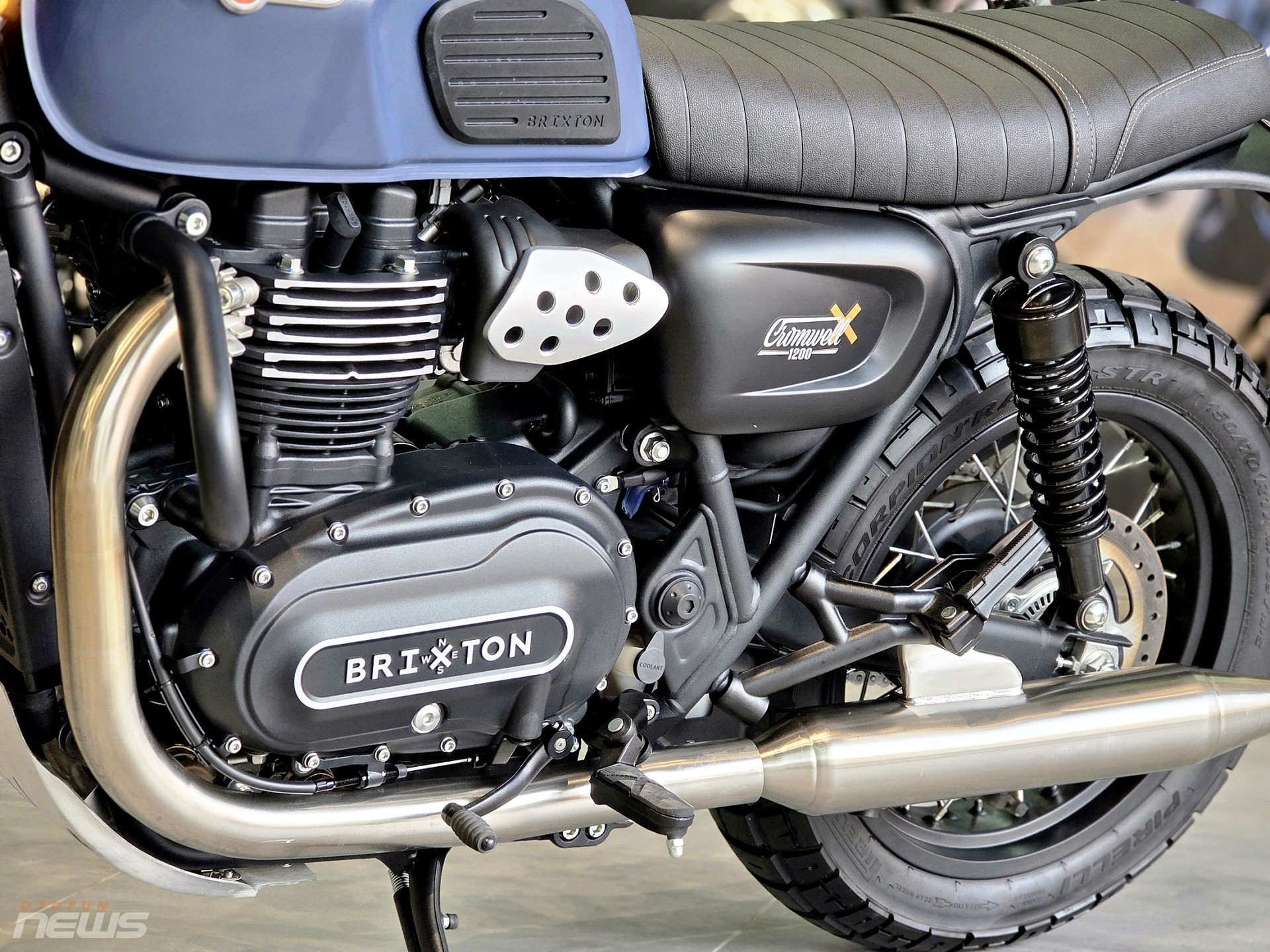 Cromwell 1200 sử dụng động cơ hai xi lanh song song làm mát bằng dung dịch, dung tích 1.222 cc. Khối động cơ này cho công suất tối đa 81 mã lực tại 6.550 vòng trên phút và mô men xoắn cực đại 108 Nm tại 3.100 vòng trên phút. Cách phân bổ sức mạnh cho thấy Brixton ưu tiên lực kéo sớm và dải tua thấp, phù hợp với phong cách lái thư thái, tăng tốc mượt và duy trì sự ổn định khi chạy đường dài, thay vì theo đuổi công suất đỉnh.