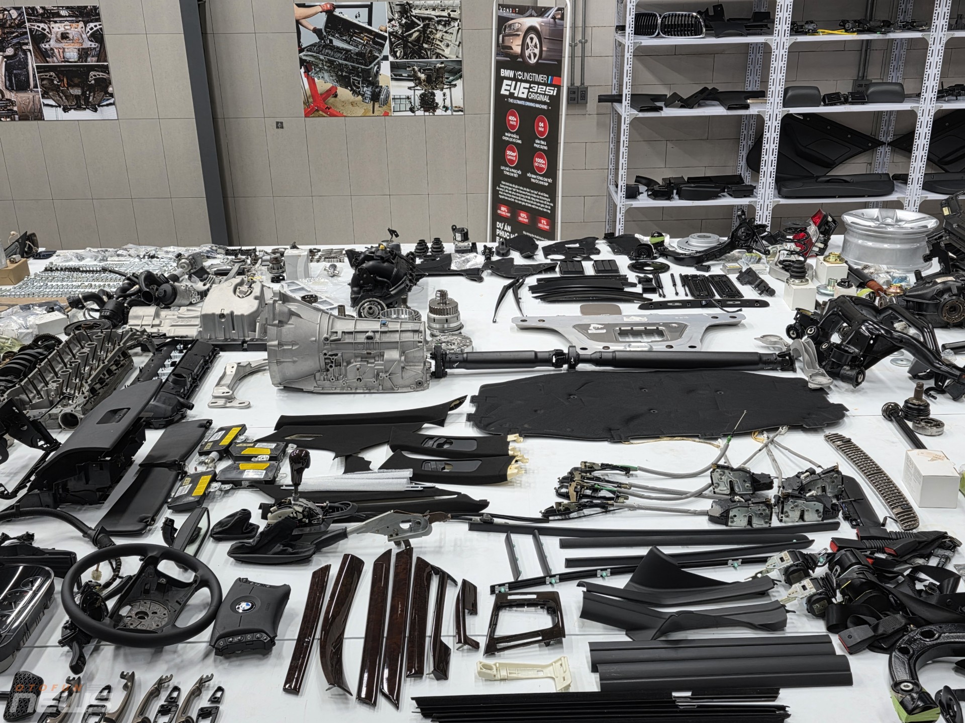 Trước khi ráp lại, Tuấn quyết định trưng bày toàn bộ chi tiết đã tháo ra. Hàng trăm món phụ tùng được bày ngay ngắn, như một “bảo tàng mini” của E46. “Khi ráp xe rồi, ta khó có cơ hội nhìn thấy từng chi tiết như vậy nữa. Tôi muốn mọi người thấy được sự công phu và giá trị của nó.”