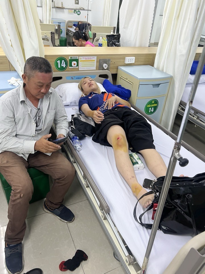 | Dấn thân vào đam mê đua xe, Yến thường xuyên "bầm dập" vì ngã xe. |