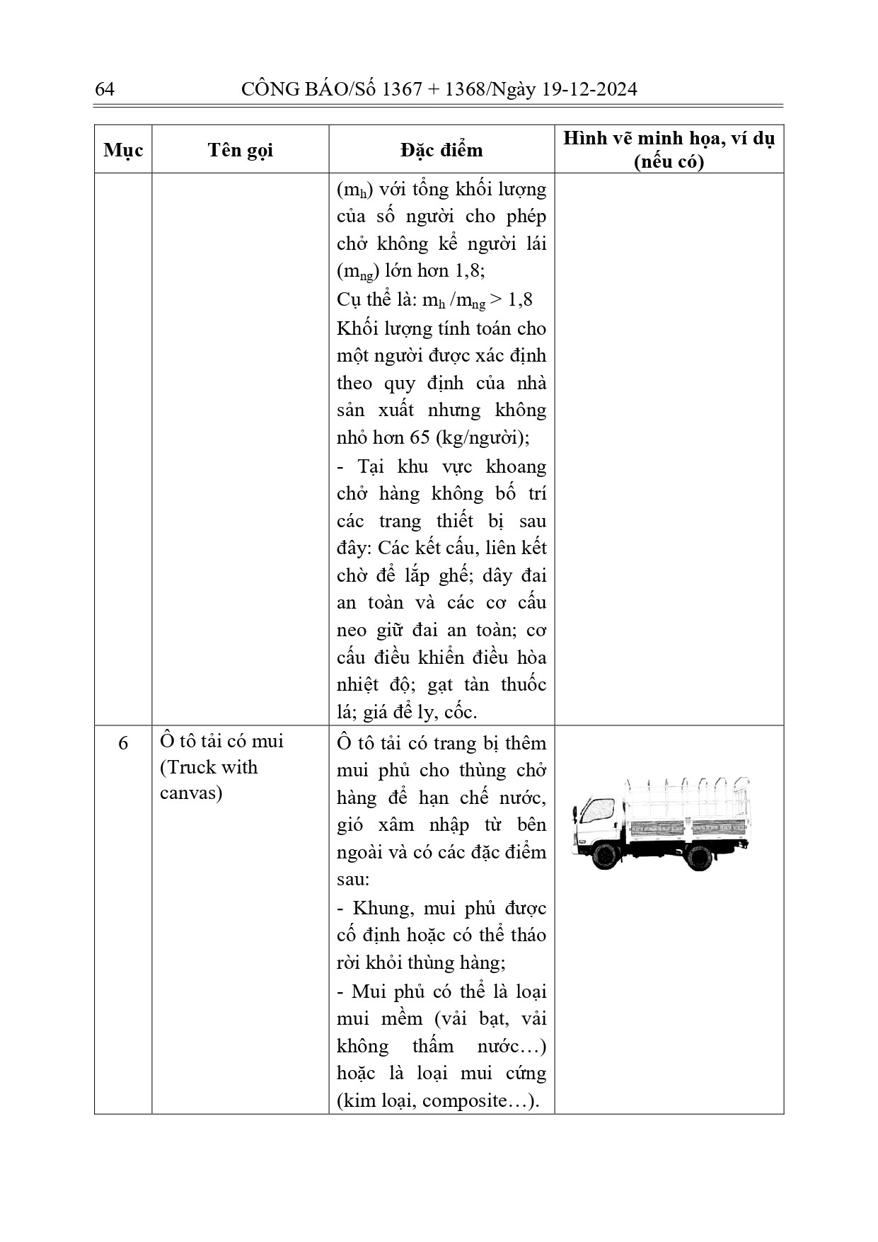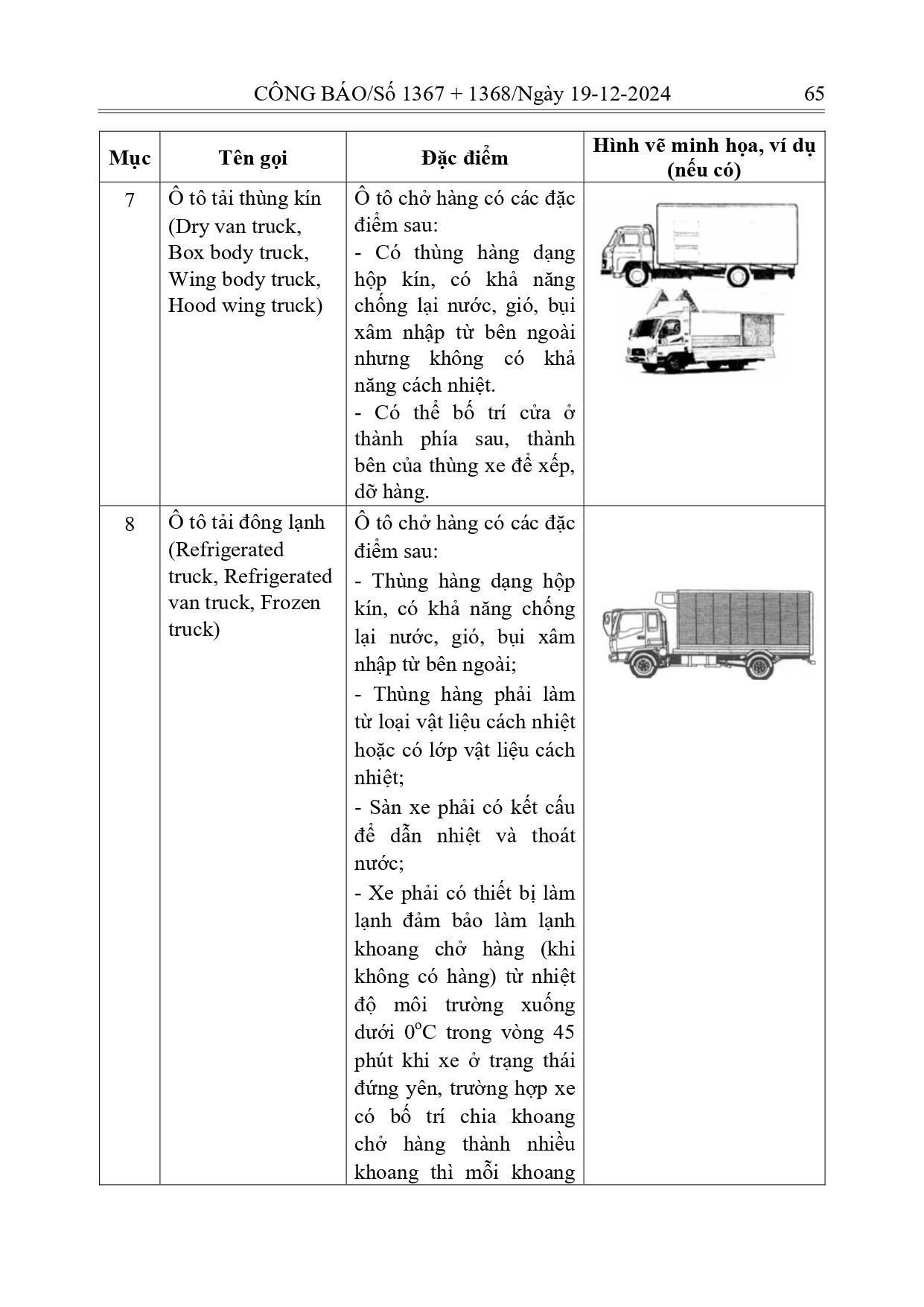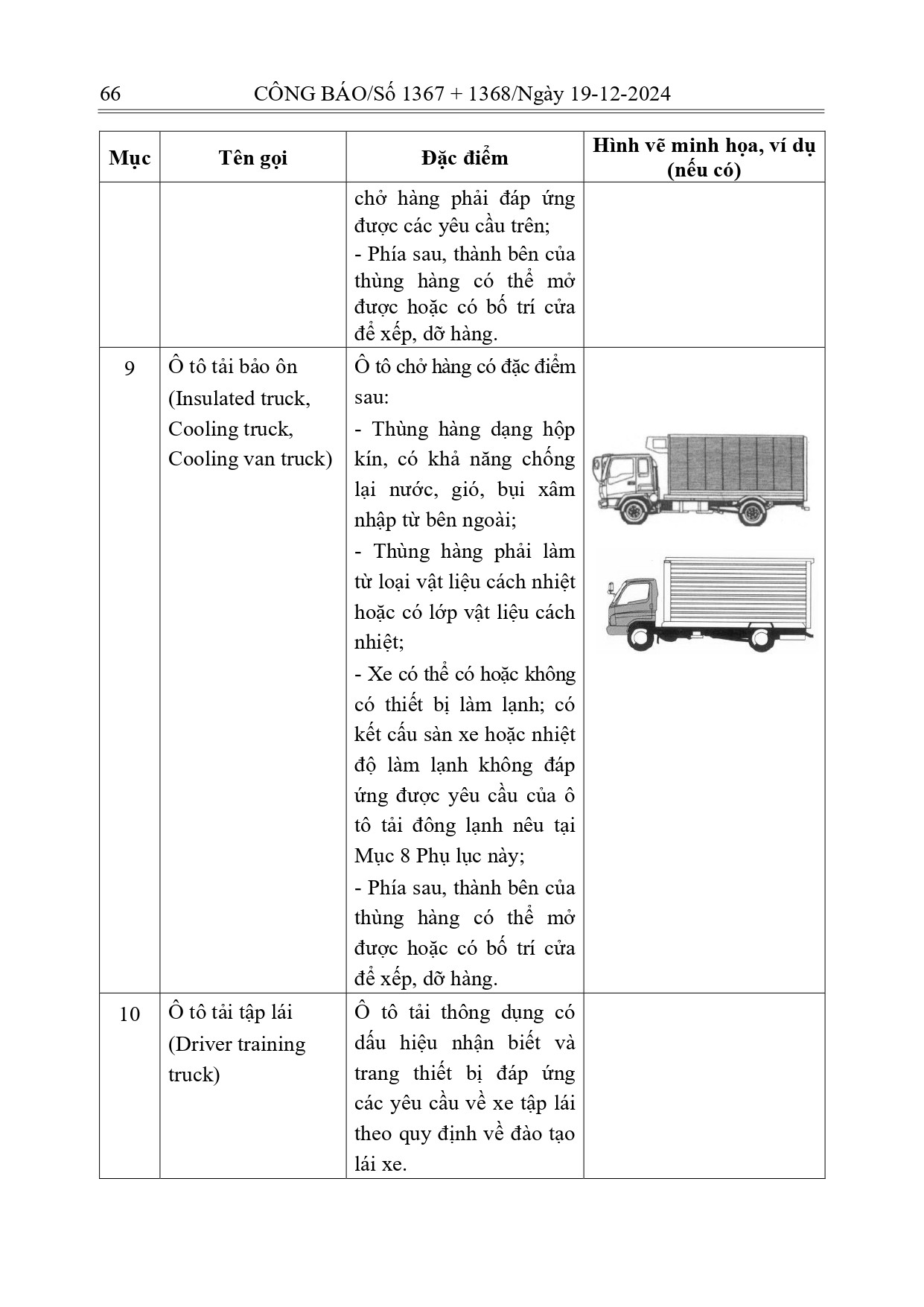 Phụ lục IV của Thông tư này quy định về ô tô tải thông dụng như sau: