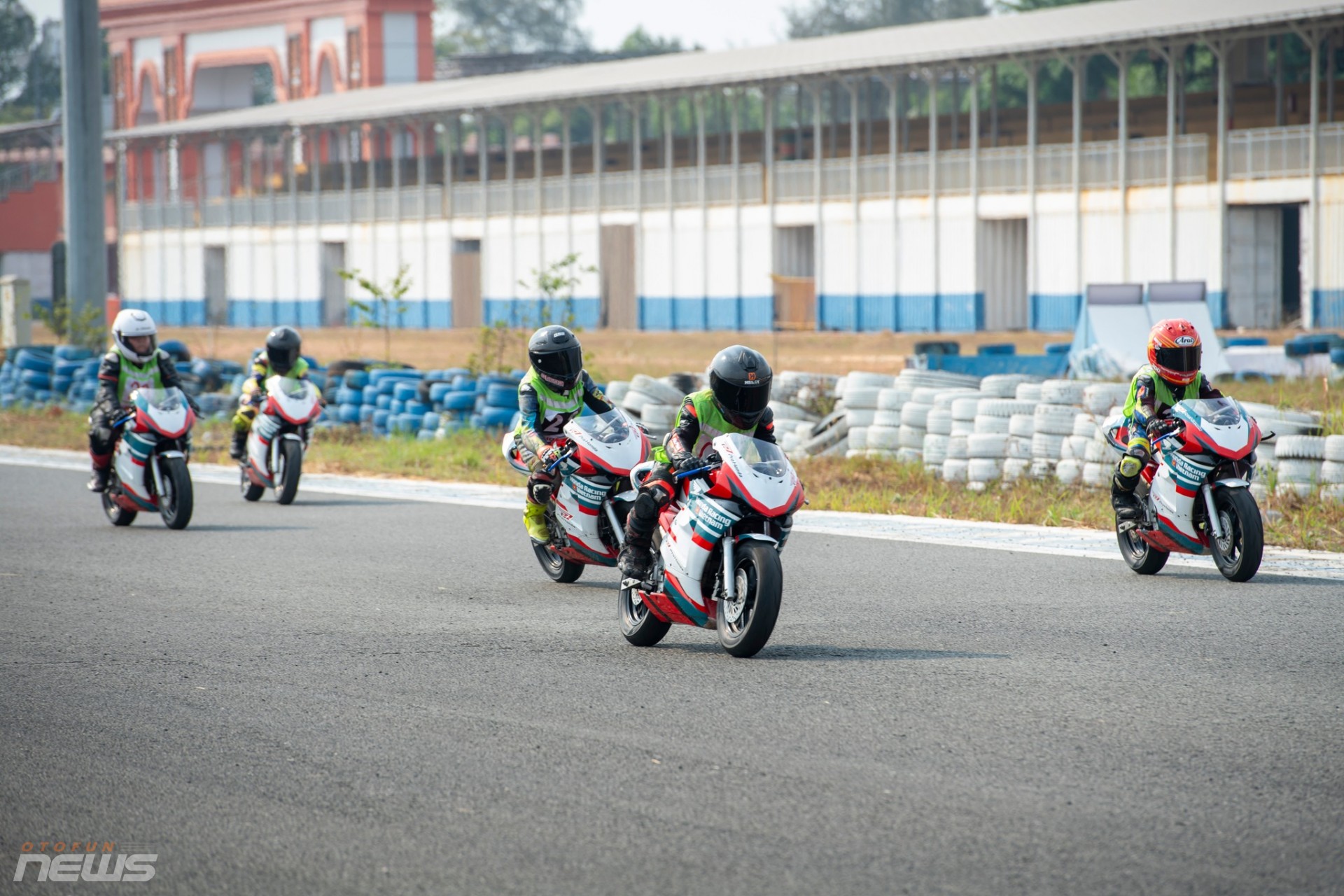 Giữa cái nắng gắt đầu năm, mặt đường nhựa Trường đua Đại Nam hắt lên hơi nóng bỏng rát. Trên khán đài, những hàng ghế vàng trải dài im lìm. Nhưng phía dưới, không khí hoàn toàn trái ngược. Tiếng còi xuất phát vang lên dồn dập, tiếng động cơ cỡ nhỏ gằn đều theo từng nhịp ga, và những bước chạy thoăn thoắt của các em nhỏ trong áo bib xanh tạo nên một bức tranh sôi động hiếm thấy.