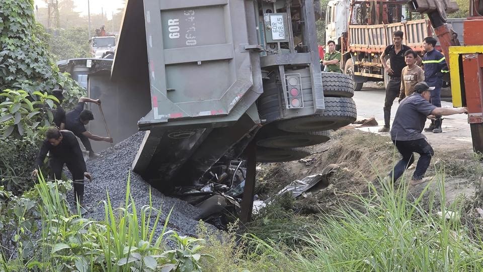 Xe ben lật đè ô tô con, nữ tài xế tử vong ở Đồng Nai