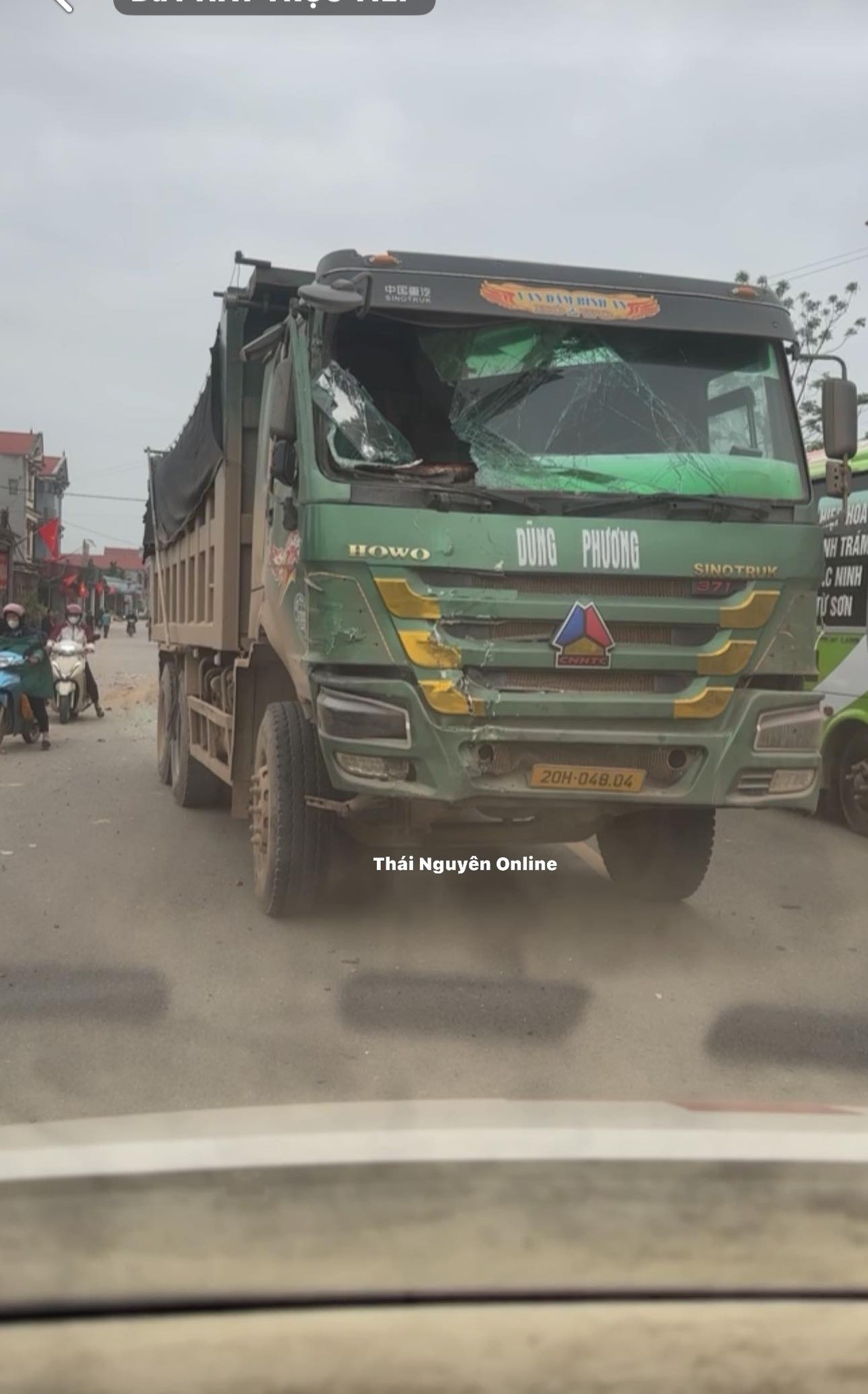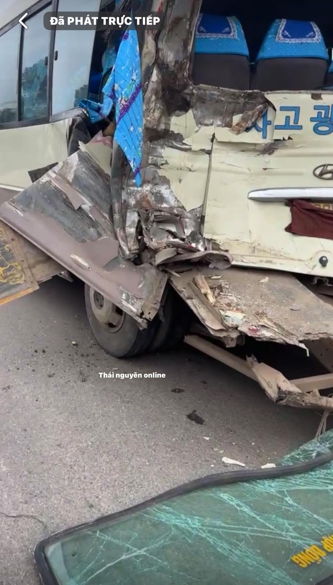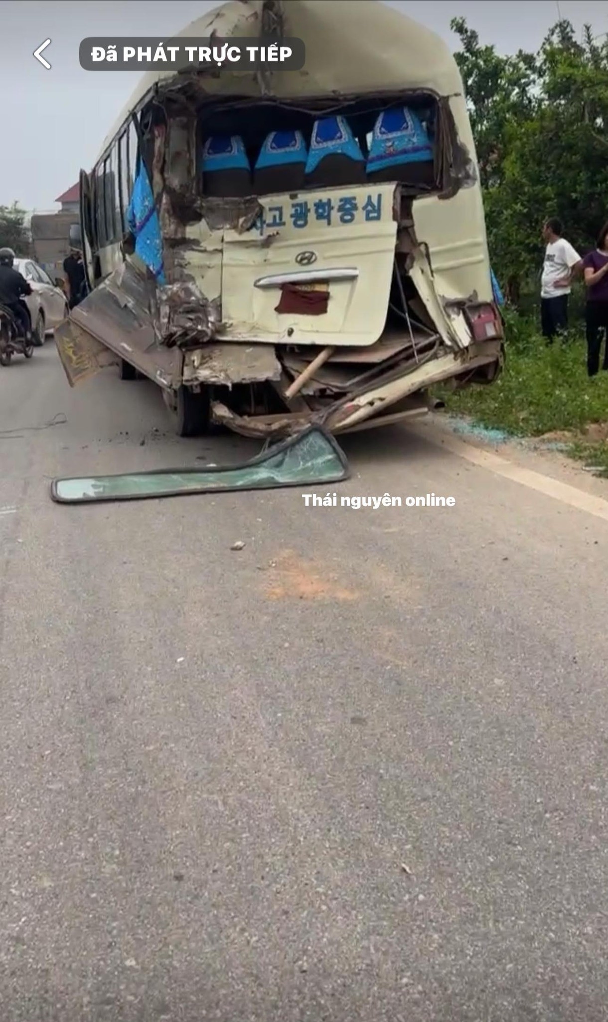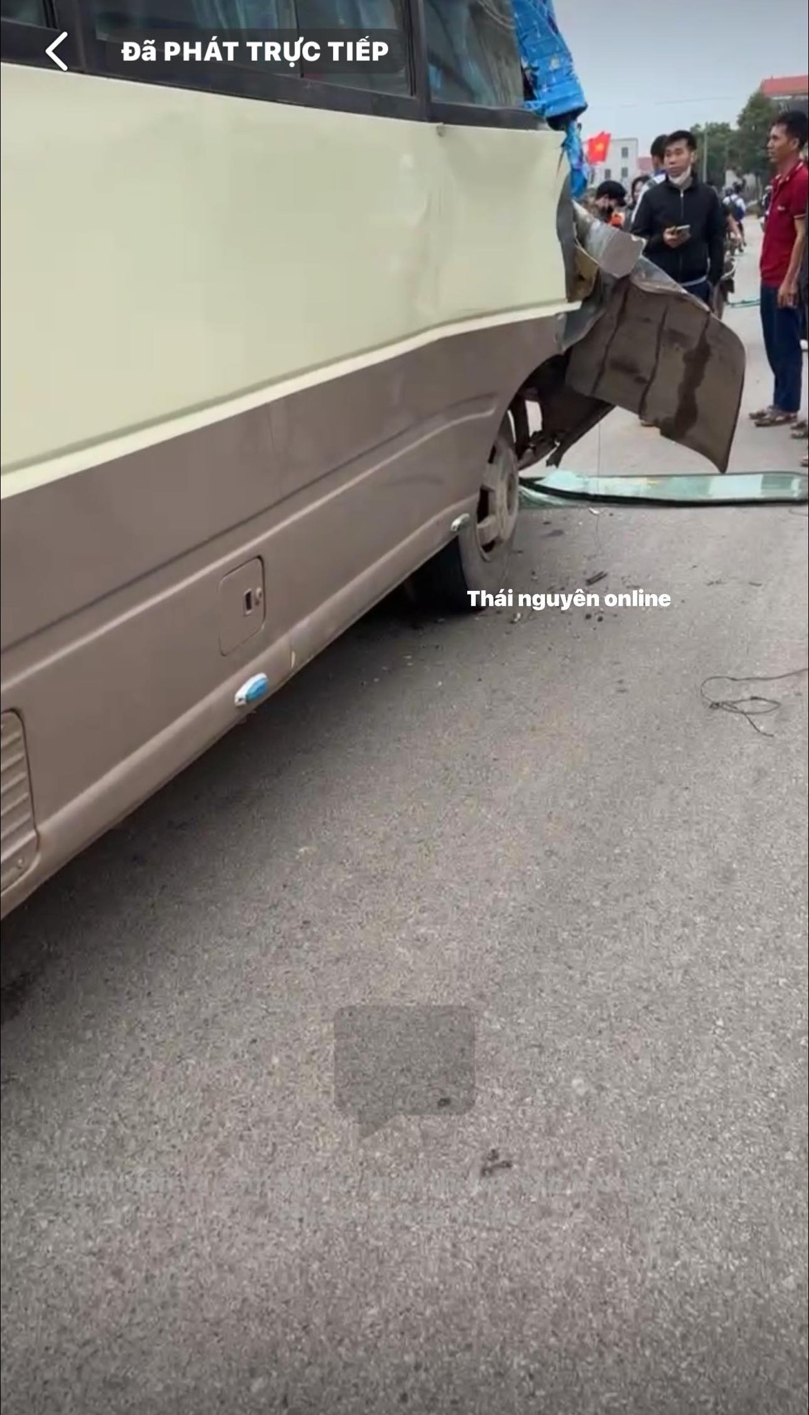 Xe tải tông mạnh vào đuôi xe 29 chỗ đang dừng đỗ đón học sinh tại Thái Nguyên