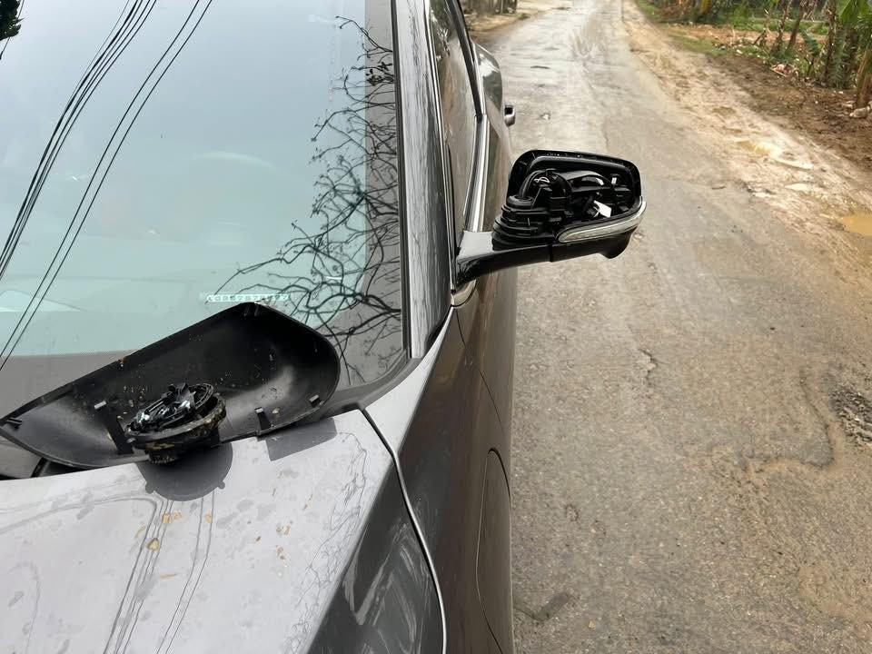 Vụ việc xảy ra tại Thanh Hóa, khi một chiếc ô tô đang lưu thông trên đường làng thì bỗng nhiên bị 2 thanh niên làng đi theo hướng ngược chiều giơ chân lên đạp vỡ gương chiếu hậu, bay cả lớp vỏ bảo vệ gương của chiếc ô tô