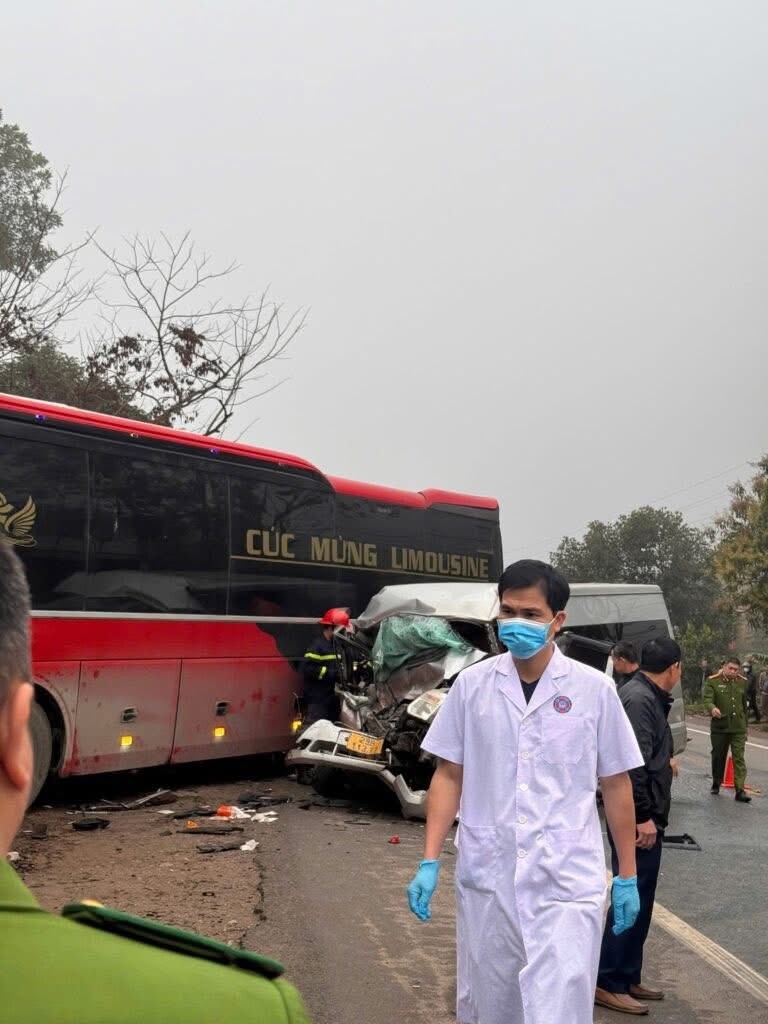 Theo đó, vào khoảng thời gian trên, một xe khách giường nằm BKS 37G-001.xx của nhà xe Cúc Mừng lưu thông trên Quốc lộ 1 (hướng Hà Nội đi Lạng Sơn) đã xảy ra va chạm trực diện với ô tô loại 16 chỗ mang BKS 29B-113.77 đang lưu thông hướng ngược lại.