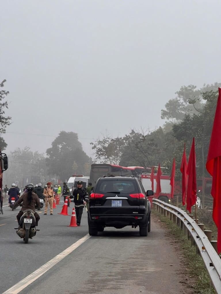 Lực lượng Cảnh sát giao thông nhận được tin báo đã nhanh chóng có mặt tại hiện trường, phối hợp với các lực lượng địa phương điều tiết giao thông, điều tra, làm rõ vụ tai nạn.
