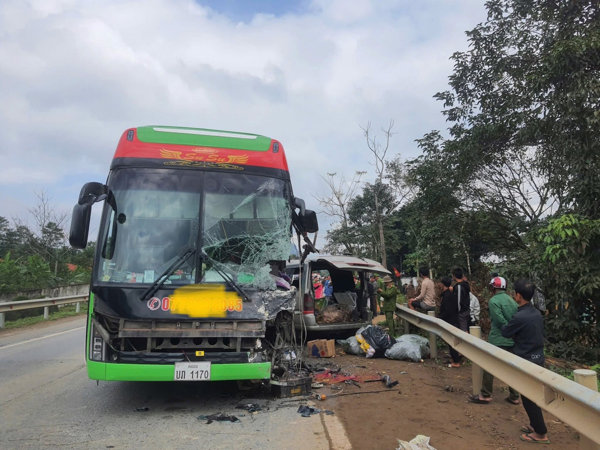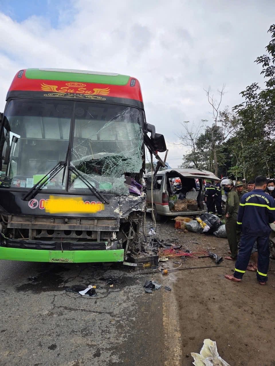 Xe khách va chạm với xe 16 chỗ trên QL9 khiến 2 người tử vong