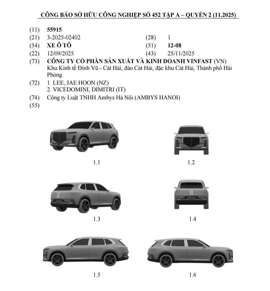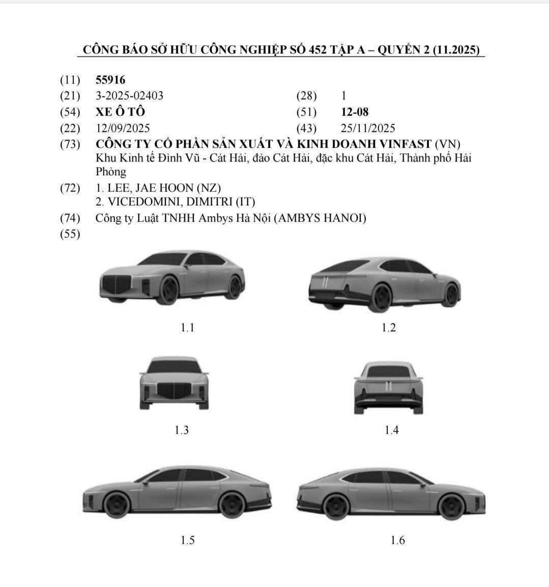 Công báo sở hữu công nghiệp tháng 11 đã ghi nhận hai kiểu dáng xe mới được đăng ký bởi Công ty Cổ phần Sản xuất và Kinh doanh VinFast. Dù chưa có thông tin chính thức, những hình ảnh từ hồ sơ cho thấy đây có thể là bước đi tiếp theo của hãng xe Việt trong nhóm sản phẩm cao cấp, tạo nhiều tranh luận trong cộng đồng người dùng.