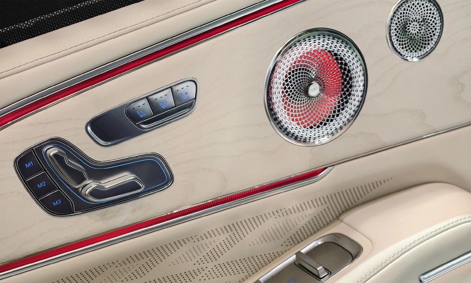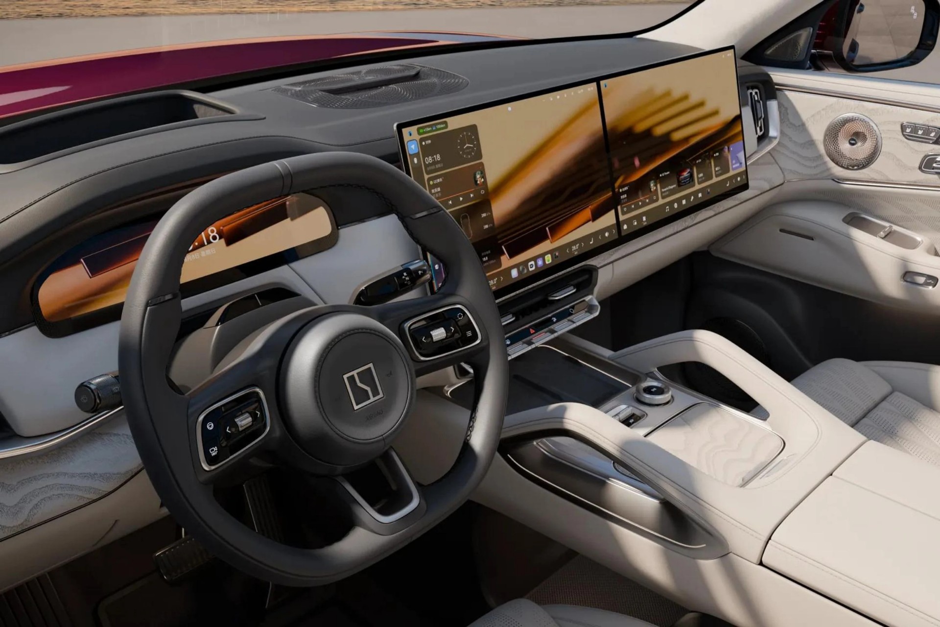 Không gian phía sau cũng được đầu tư với màn hình điều khiển 8 inch, màn hình trần 17 inch, bàn ăn gập và tủ lạnh. Hệ thống âm thanh Naim 29 loa hỗ trợ Dolby Atmos hướng đến trải nghiệm giải trí cao cấp. Toàn bộ hệ thống vận hành được xử lý bởi chip Qualcomm 8295 đơn hoặc kép, tích hợp trợ lý ảo AI Eva.
