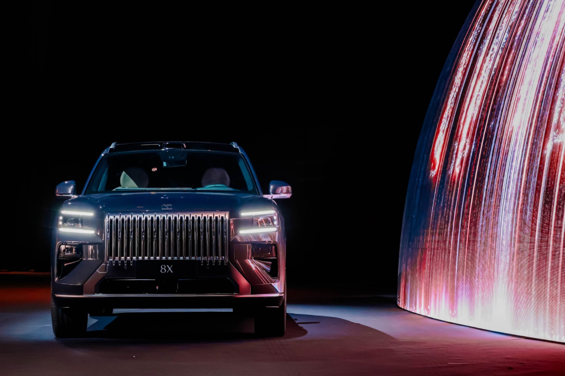 Về thiết kế, 8X đi theo phong cách mềm mại và thể thao hơn so với 9X. Nếu mẫu xe lớn hơn gây chú ý với dáng vẻ vuông vức gợi liên tưởng đến Rolls-Royce Cullinan, thì 8X lại sử dụng nhiều đường cong và chi tiết bo tròn. Tuy vậy, xe vẫn giữ một số nhận diện chung như lưới tản nhiệt cỡ lớn, cụm đèn LED hình chữ C và dải đèn ban ngày dạng ngang.